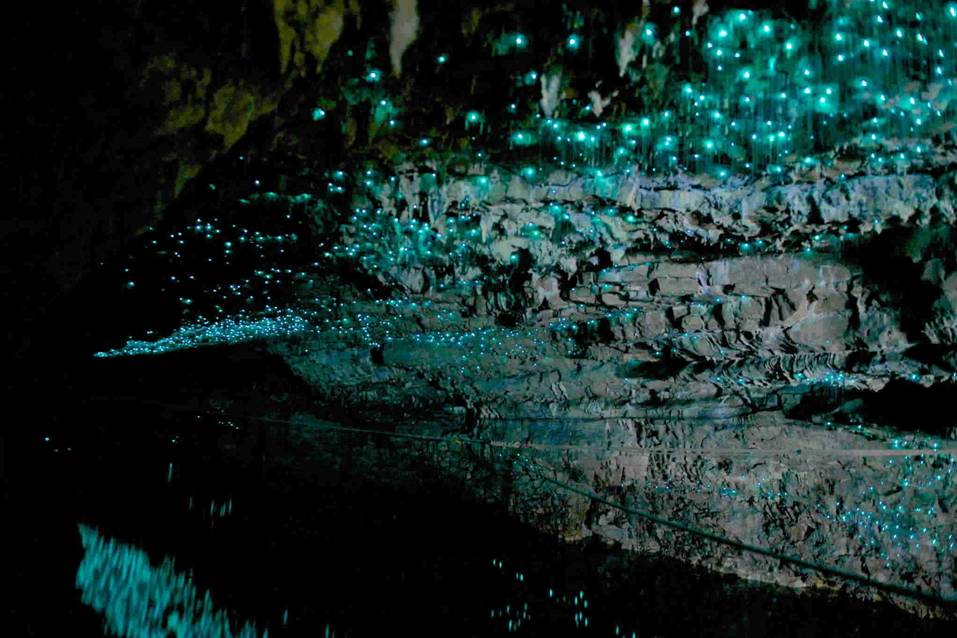 Grottes de Nouvelle-Zélande peuplées de larves d'Arachnocampa Luminosa